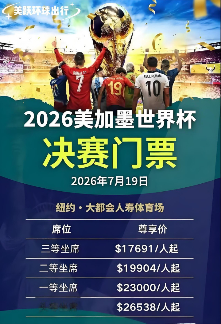 美加墨世界杯的这波操作,无疑是在透支球迷的热爱。对于这场处处都在考验球迷钱包厚度的“贪婪世界杯”,您是怎么看待的呢?您觉得国际足联的这些做法合理吗?欢迎在评论区留下您的真知灼见,咱们一起探讨!